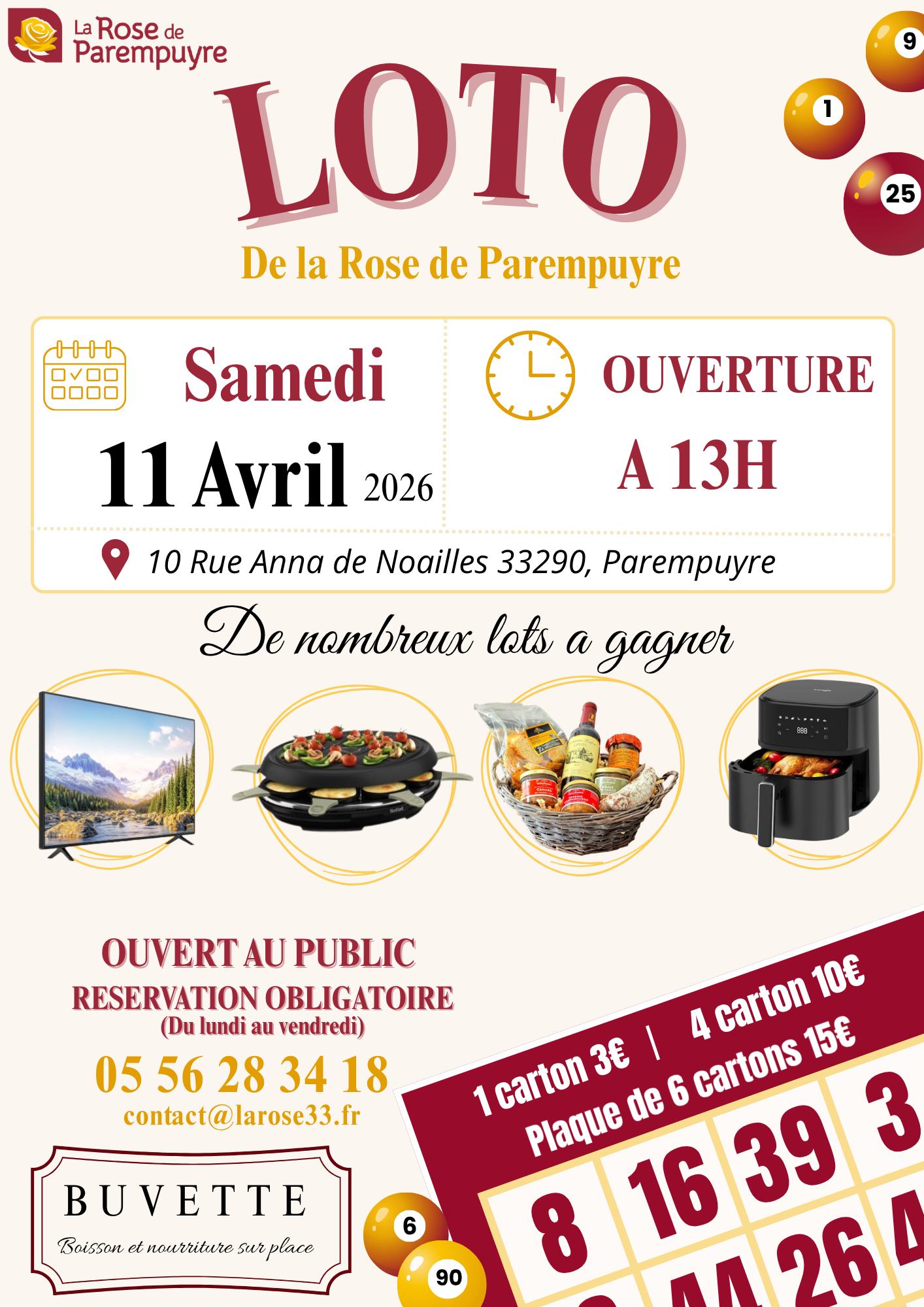 🌹✨ Pour la toute première fois, La Rose de Parempuyre organise son Grand Loto ! ✨